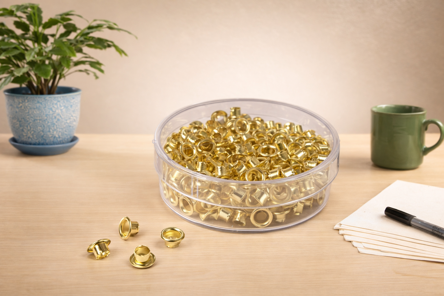 Brass Eyelets for the Efficient and Speedy Akiles AEP Manual Punch – Boxed In a Clear Efficient Clear Container of 250 Eyelets