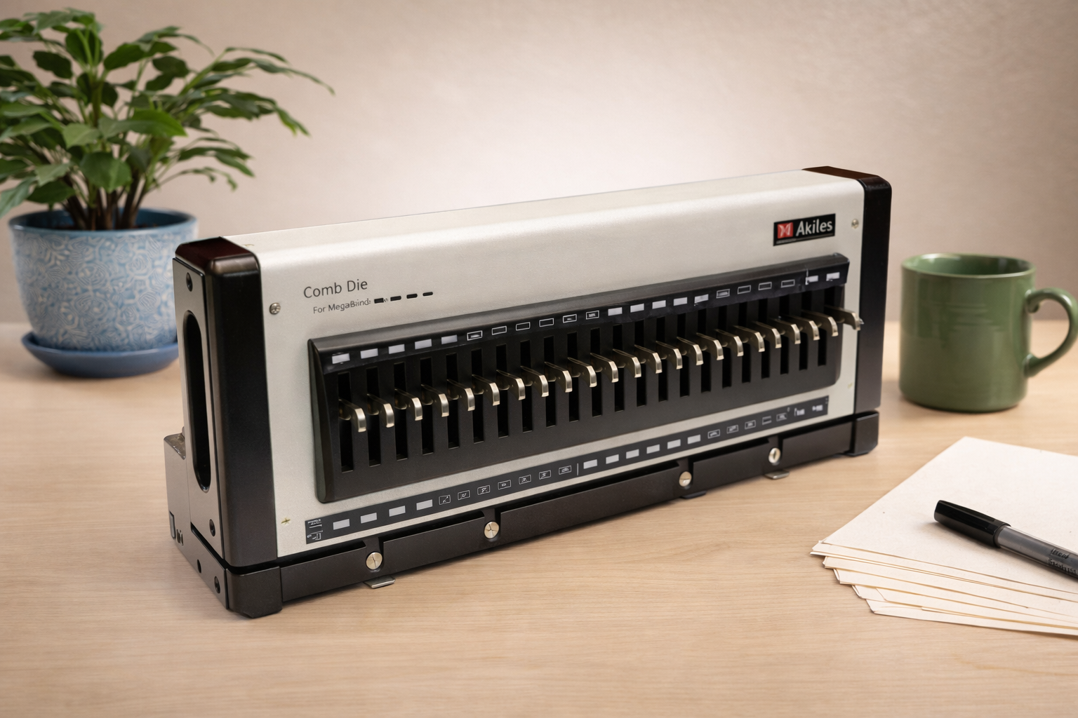 Akiles produces four different Quick Die Set FlexiPunch Systems Dies for the FlexiPunch binding systems. Choose a die for plastic comb binding, 3:1 pitch wire binding, 2:1 pitch wire binding or 4:1 pitch spiral coil binding.